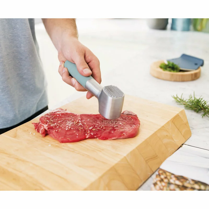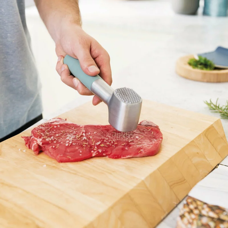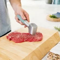This stylish meat hammer comes with two different sides: a rather smooth end for flattening meats and poultry, and the other end with “teeth” is used for tenderizing meats. Also great to crush garlic and nuts.
