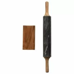 Bloomingville Marble Rolling Pin With Acacia Wood Handles/Holder, Black/Natural, 2-Piece Set