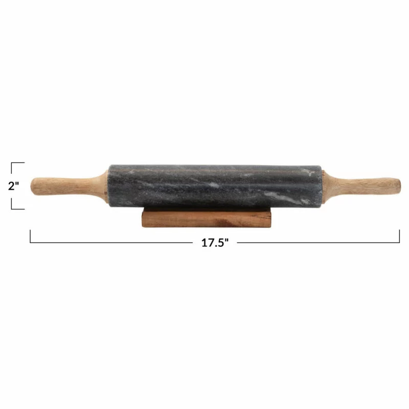 This rolling pin makes baking stylish. Made out of marble and featuring a sleek black finish, this piece also has acacia wood natural colored handles. This comes in a set of 2, and will be sure to bring a pop of style to your next baking day