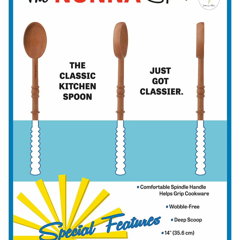 “The classic kitchen spoon just got classier. The Nonna Spoon’s unique design is dedicated to the matriarch in our lives. Nonna Elsie, my grandmother (like many), didn’t tell me she was a superhero when I was growing up. It wasn’t until I was much older that I learned of her strength, courage and incredible power to love. I would often hear her say “Don’t break my spindles!” as I sat impatiently and kicked the spindles on her kitchen chair. This typically happened while I waited for Nonna to prepare me a plate of her deliciously homemade sauce on a fresh piece of bread. Luckily, I never broke Nonna’s spindles, but they proved to be the perfect inspiration for this design.”