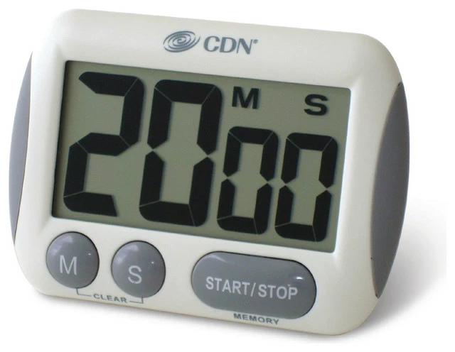 Simplify your cooking and baking processes with help from the Extra Big Digit Timer. Made from high-quality white plastic with a large display, this timer is durable and easy to read. Its features include an alarm, stop and restart function, last count recall, magnetic back, convenient stand, and small loop for hanging.