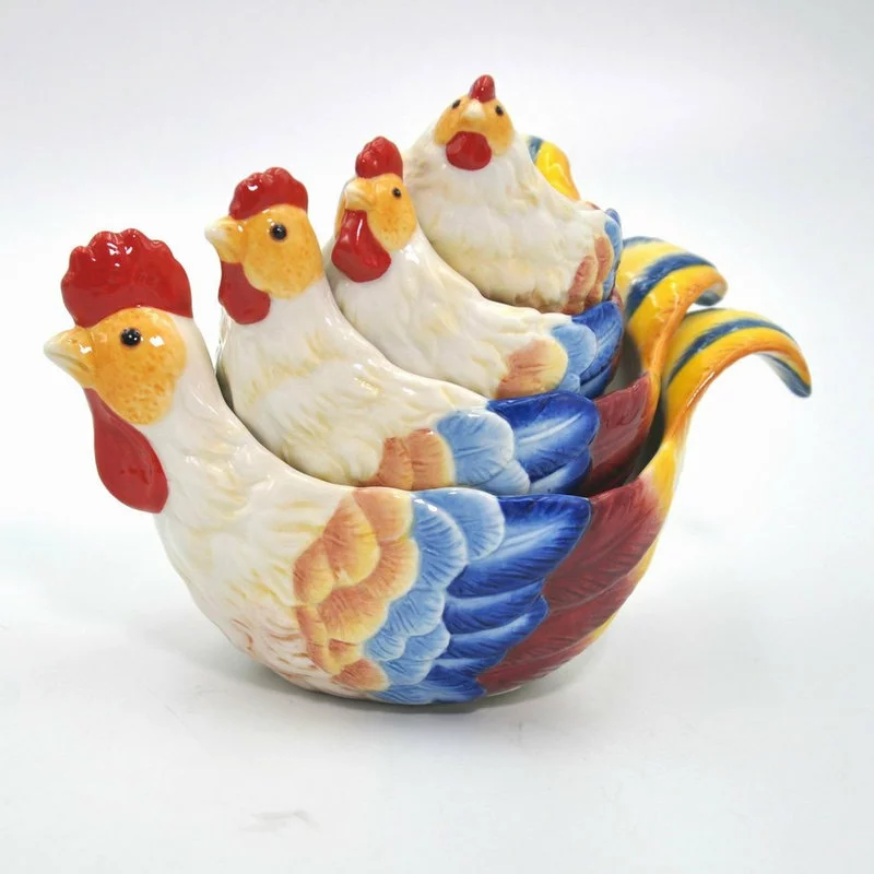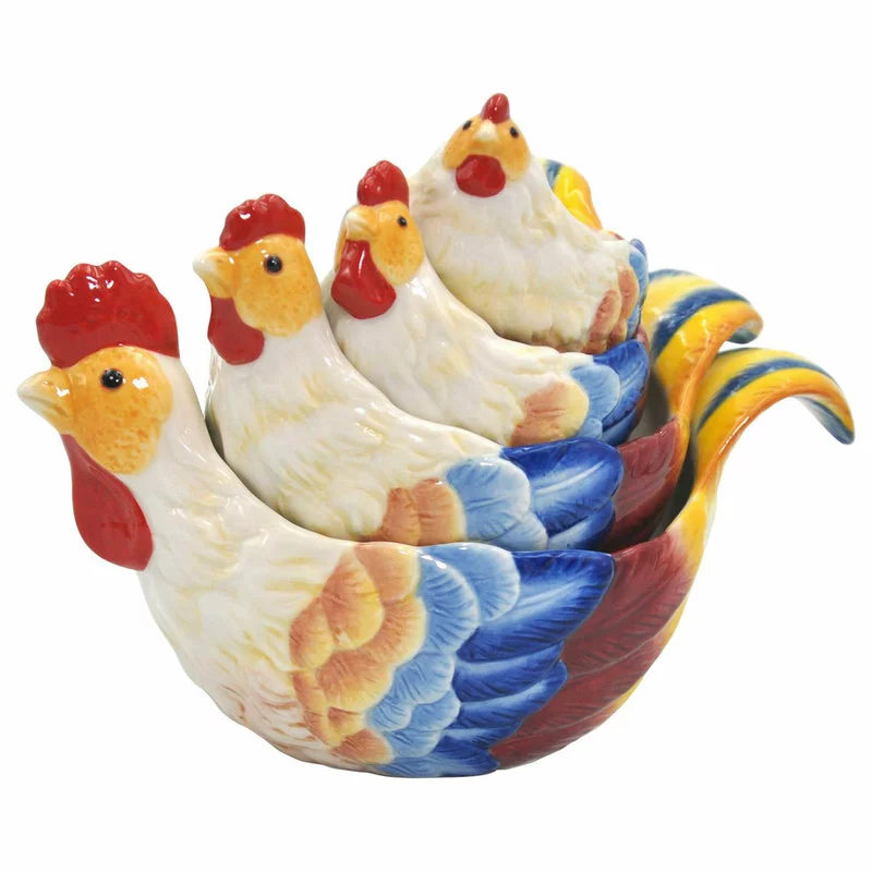 Cosmos Gifts Corp. Porcelain Rooster Measuring Cup, Set Of 4
