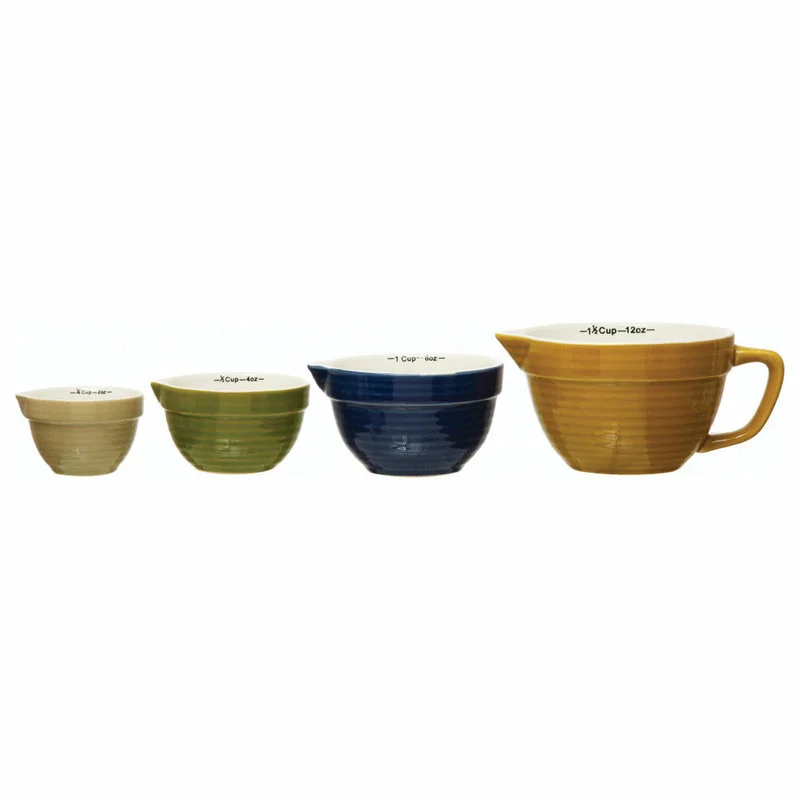 CREATIVE CO-OP Stoneware Batter Bowl Measuring Cups, 4-Piece Set