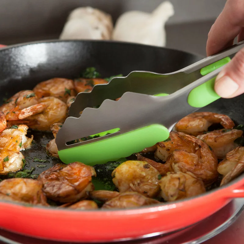 The Ergo Chef Duo Tongs Silicone and Stainless Steel are hard metal for a strong grip on the grill, and a soft touch for the non-stick pan. Having it all meanshaving two pairs of tongs until now. With the Duo Tongs you get the best of both textures built into one ergonomically designed utensil.