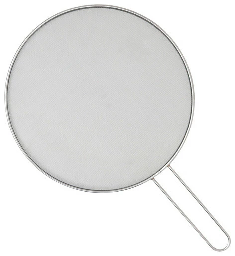 This Stainless Frying Pan Splatter Guard protects hands, arms, and clothing from hot oil and grease splatters that occur while cooking. Featuring corrosion resistant 18/8 stainless steel construction, this frying pan splatter screen is dishwasher safe and measures a full 13 inches in diameter to work with most frying pans.