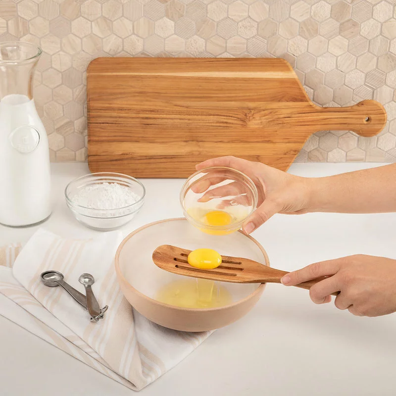 - Elongated design stirs large batches with little effortMedium slotted spurtle strains, drains and sifts;