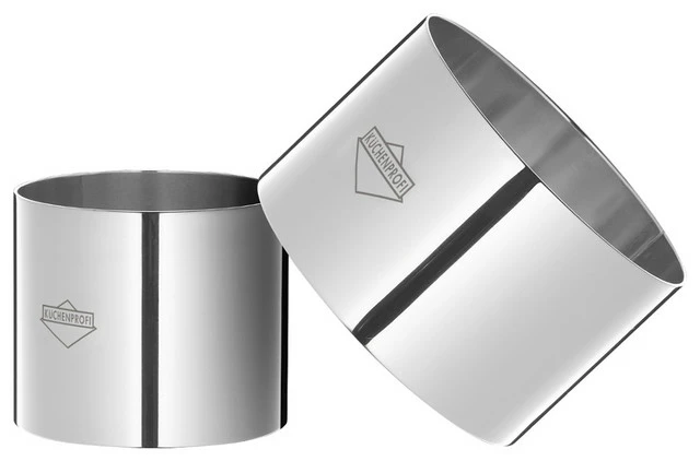 Meet a variety of cooking and prep needs with this four-piece prep/plating/forming set from Kuchenprofi. This set includes four stainless steel rings: two 2.5 inch rings and two 3 inch rings. This set is perfect for creating works of art for your appetizer, main course, or even dessert. Use the rings to shape everything from salad servings and crab cakes to cutting cookies or biscuits. Even better, all of the rings are dishwasher-safe for easy clean-up.
