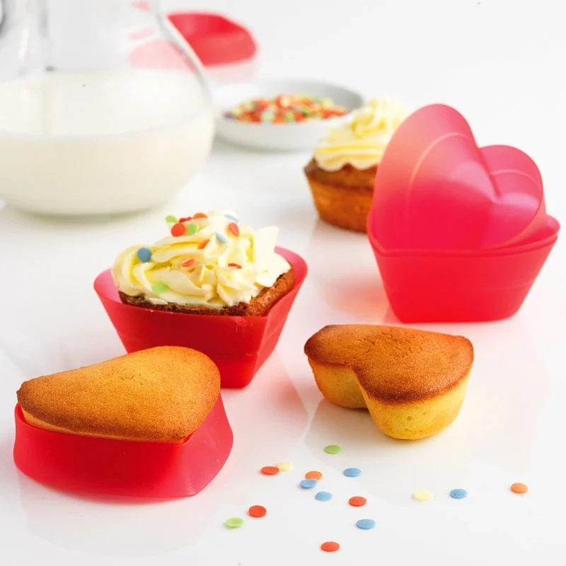 Make fun, simple heart-shaped treats all year long with this set of six baking cups from Mastrad. Constructed of durable silicone, this set of six identical baking cups is perfect for making heart-shaped muffins and cupcakes. The cups can also be used as measuring cups so that you can be sure you have the perfect amount of ingredients that you need. The raspberry red and pink hearts are a fun way to celebrate Valentine’s day, or just to show your loved ones that you care.