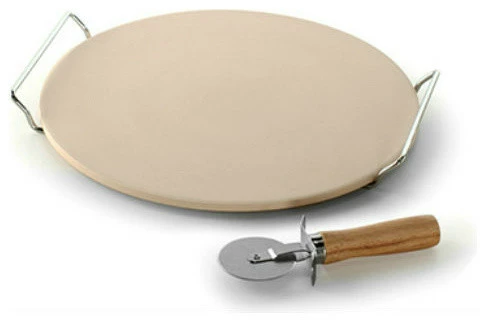 Produce brick-oven-style results at home! Stone heats evenly and absorbs moisture to produce a crispy, delicious crust. Perfect for pizza, calzones, flatbreads and even cookies. Includes 13” stone, serving rack and cutter.