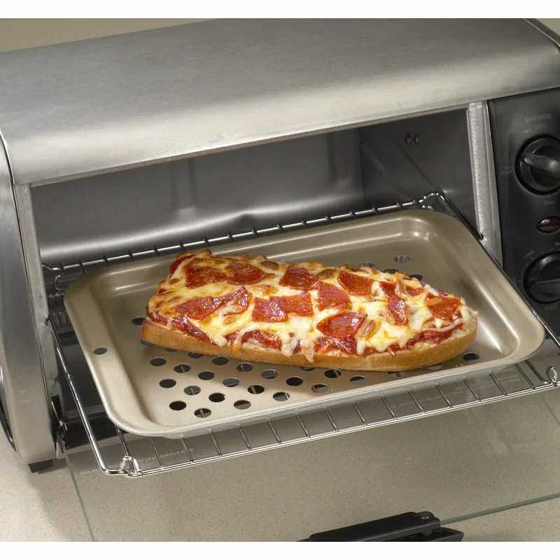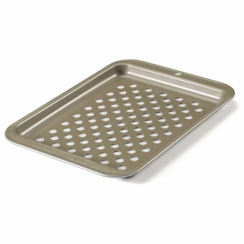 Leftover pizza, when re-heated properly, can sometimes be better than the original. The best way to re-heat is by using this crisping sheet from Nordic Ware, which lightly crisps and enhances the flavor of your foods. The crisper can be used with a standard conventional oven, or a toaster oven, and is ideal for pizza, breads and more. The entire sheet in non-stick, which makes food removal and clean-up quick and easy.
