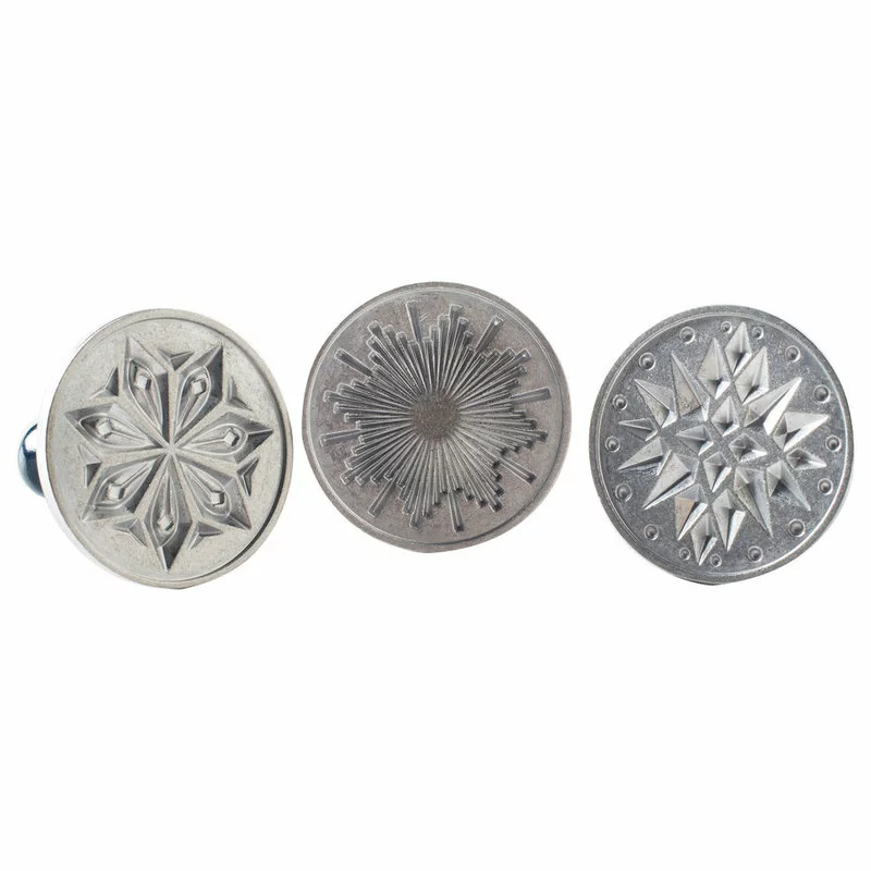 Create unique cookies with this set of cookie press stamps from Nordic Ware. Made from cast aluminum these stamps includes different star shaped impressions. Each press features a wooden handle for a beautiful and functional design. The perfect addition to any baker’s kitchen this cookie press set is proudly made in the USA and makes a great gift. Even better it is dishwasher safe.