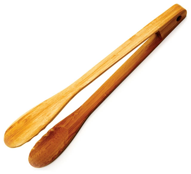 Meet all your kitchen cooking needs with this Norpro tong. Made of bamboo, it measures 12 inches in length. Bamboo is durable, moisture resistant, sturdy and lightweight, as well as heat and stain-resistant. Naturally anti-microbial, this wood is a sustainable, renewable resource that naturally replenishes itself, making it an ecologically responsible alternative to clear-cutting old-growth forests. This is safe for all surfaces, including nonstick, glass, enamel, and stainless steel. This tong is a kitchen essential.