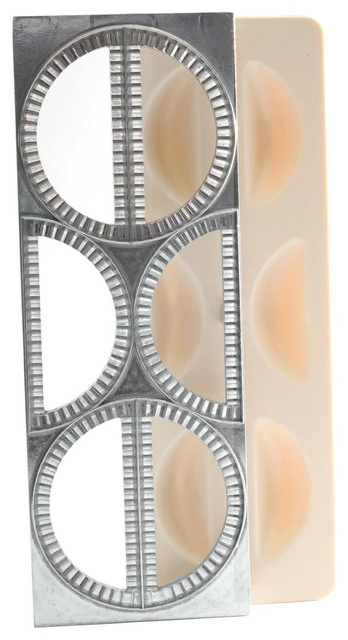 Create filled masterpieces with this Norpro pierogi maker and press. It features stainless steel construction, making it durable and long-lasting. This press allows you to fill, seal, and cut six uniform pierogis at once without making a mess. Fill them with anything you like. This press also works great for Asian-style dumplings and includes recipes and instruction. This Norpro pierogi maker and the press is the perfect addition to any kitchen.