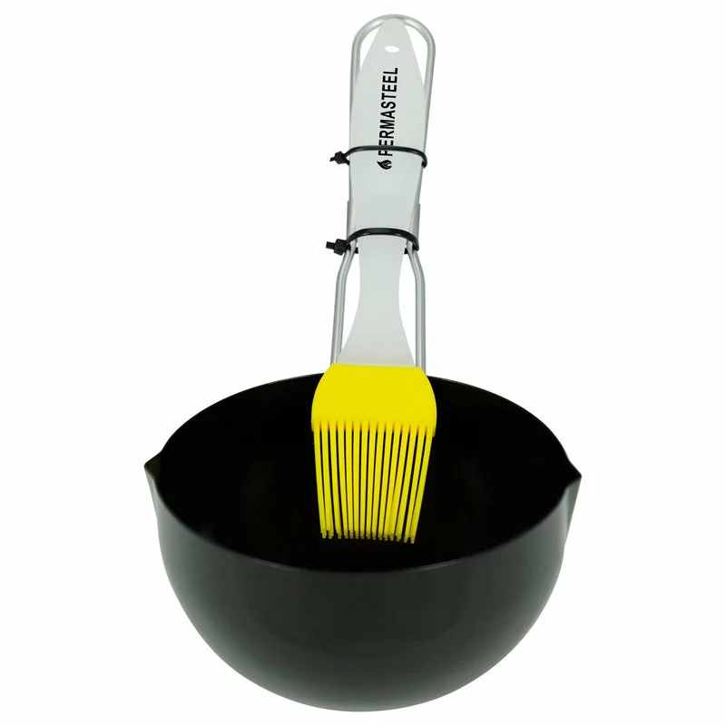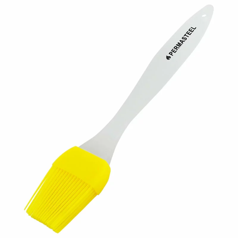 The Permasteel Basting Brush and Bowl is an essential cooking tool to spread oil, butter and sauces onto all your favorite foods. The brush is constructed with a durable steel handle and silicone mop head that cleans easily. Heat resistant, sleek and easy to use design.