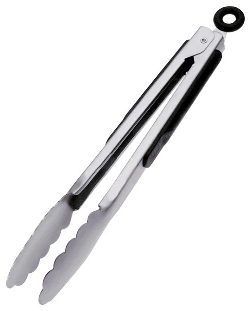 Safely grab and turn your food while cooking with these Prepworks tongs from Progressive. Made from stainless steel, these tongs have comfort grip handles. The locking mechanism keeps the tongs closed for easy storage or you can use the hanging loop for an alternative storage. These locking tongs are also dishwasher safe for an easy clean up.