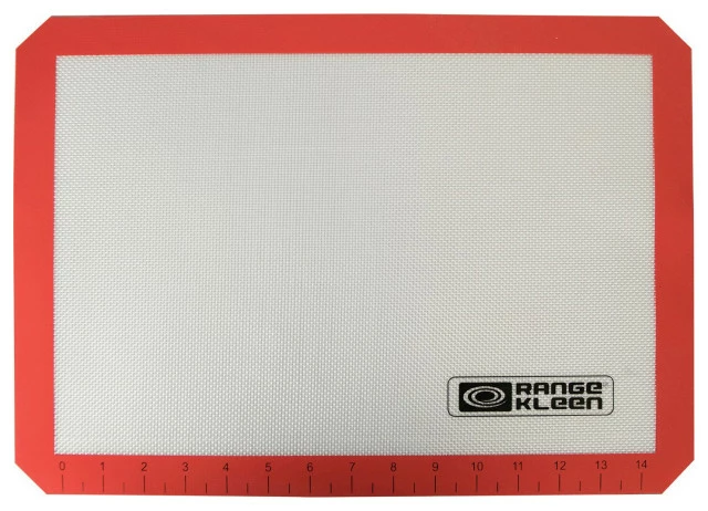 Silicone Baking Mat 11.625×16.5-inch Sgl Pk The Non-Stick Half Sheet Silicone Mat by Range Kleen is a must-have for every kitchen! Bakes healthy pastries and desserts without the use of added oils or butter. The non-stick surface is ideal for candy making, cookie baking, and even food prep involving the freezer! This reusable mat is also great for rolling doughs and pastries!