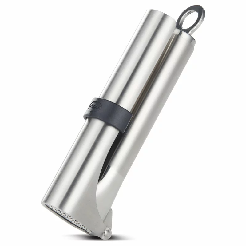 Garlic Press 18 cm /7.1 in.A slim yet solid garlic press in an elegant design.Even unpeeled garlic cloves can be pressed easily. Top-notch pressing is guaranteed, thanks to the sieve with its offset, conical holes. The sieve can be taken out for washing under running water. Because of the flat base, it can stand securely on the worktop, and is therefore always at the ready.