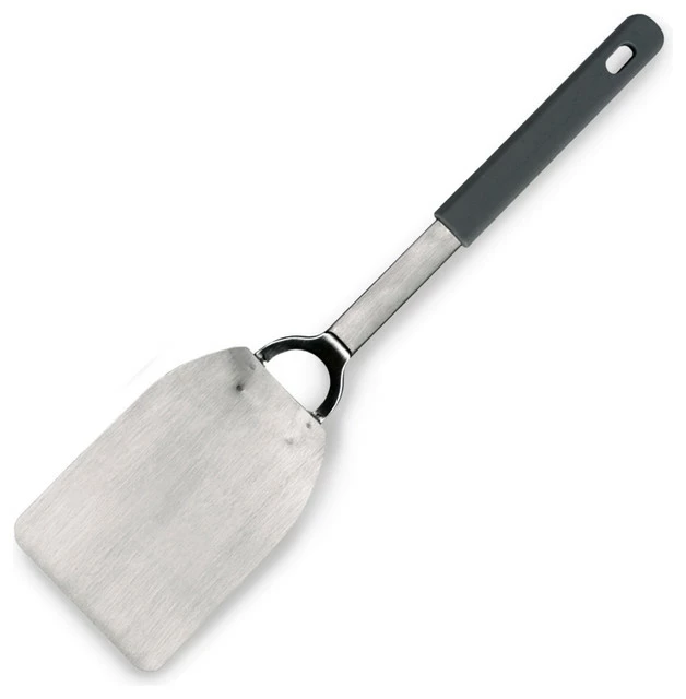 Prepare a delicious burger on the stovetop or flip a yummy breakfast omelet with this RSVP Endurance flexible spatula. Made from stainless steel, it features a soft grip, long handle made from santoprene. Use the hanging hole to conveniently store it away on the wall or under a cabinet. This flexible spatula is also dishwasher safe for easy clean up.