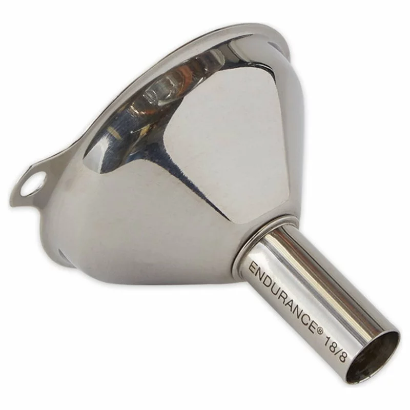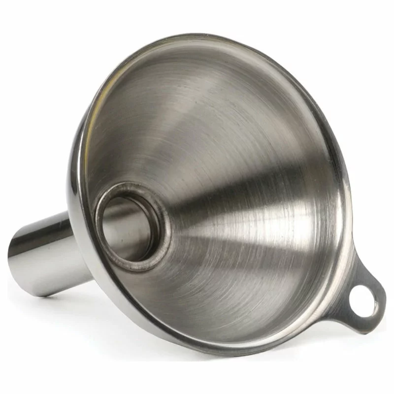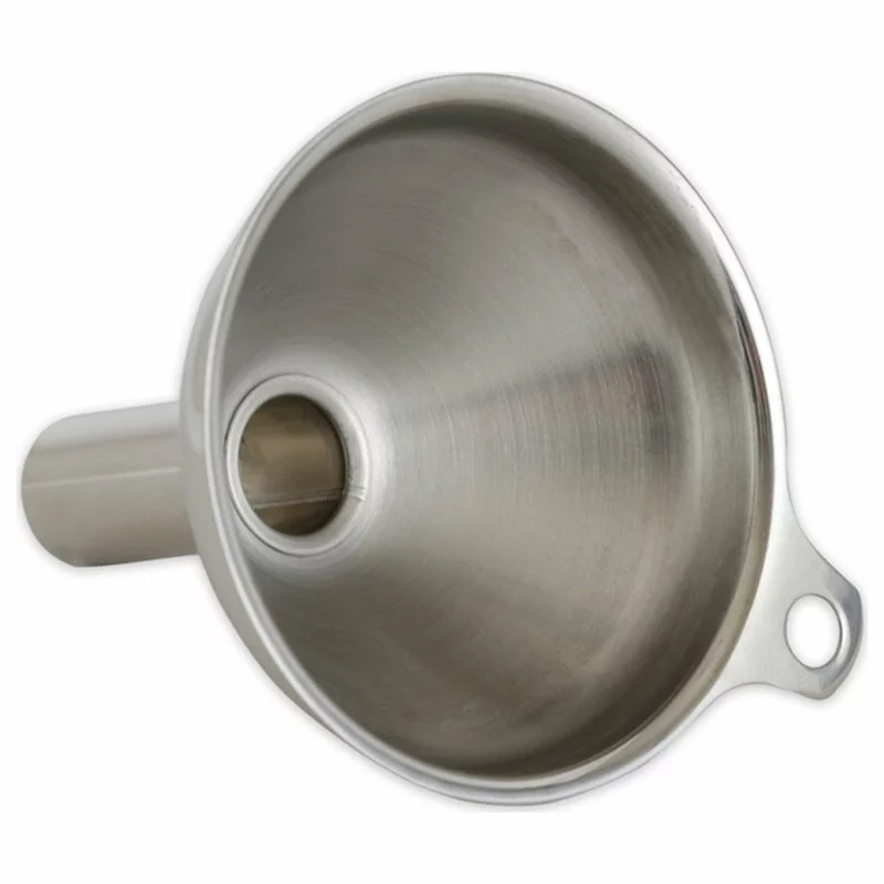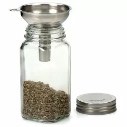 This Spice Funnel is the perfect kitchen accessory to transfer spices to and from different bottles. Constructed from stainless steel, this spice funnel has a small spout bottom that will fit into small spice jars and bottles. This spice funnel can also be used to transfer baking extracts to and from different storage bottles. This spice funnel is dishwasher safe and a must-have tool for those who store spices in special bottles instead of their original store packaging.
