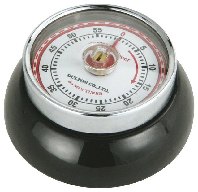 Time your meals in style with this retro kitchen timer from Zassenhaus. Made of durable steel, it is built to last. Its magnetic back holds to most metal surfaces, making it great for use on the fridge or the oven. The timer goes up to one hour and features an easy-to-read dial. It is backed by a one year manufacturer’s warranty.